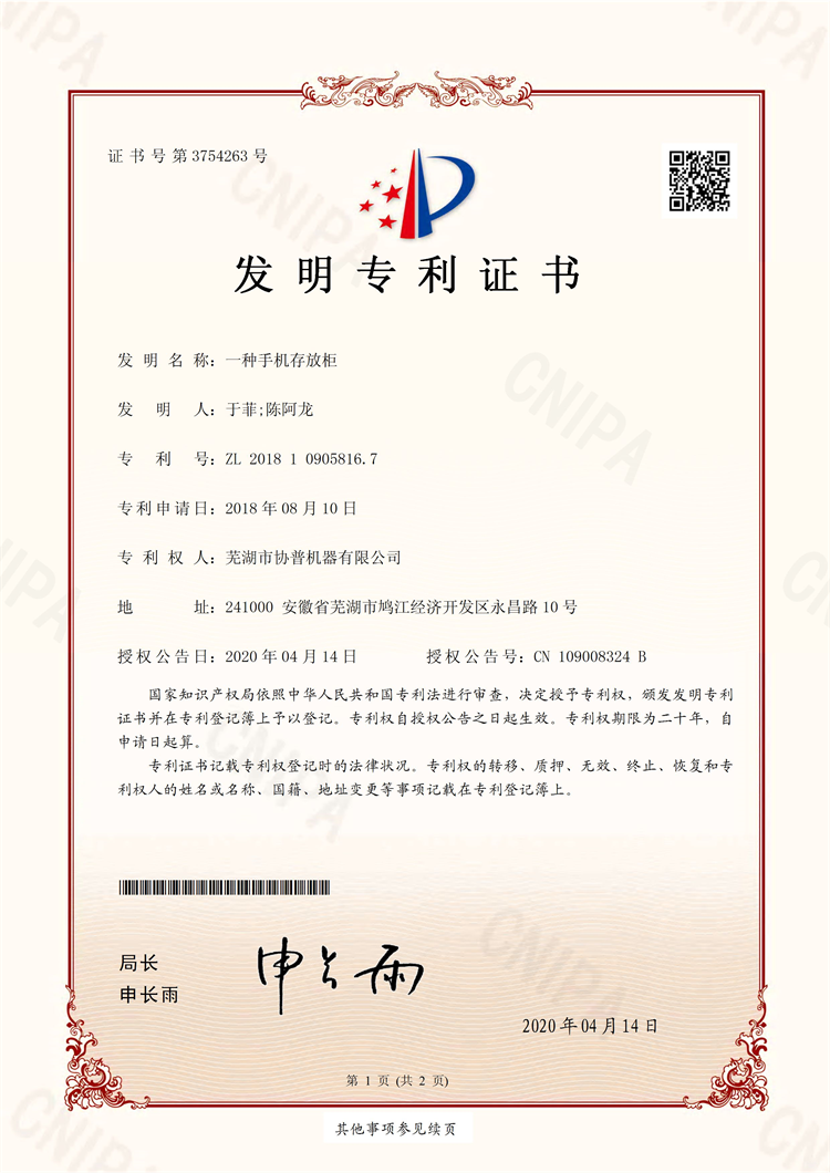 發(fā)明專利證書