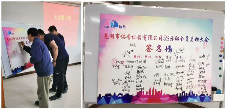 全員宣讀完誓詞后大會(huì)進(jìn)入最后一項(xiàng):簽名墻簽名。全體協(xié)普成員陸續(xù)上臺(tái)落款簽名,表達(dá)對(duì)公司”5S” 管理改善活動(dòng)會(huì)給予全力落實(shí)推進(jìn)。