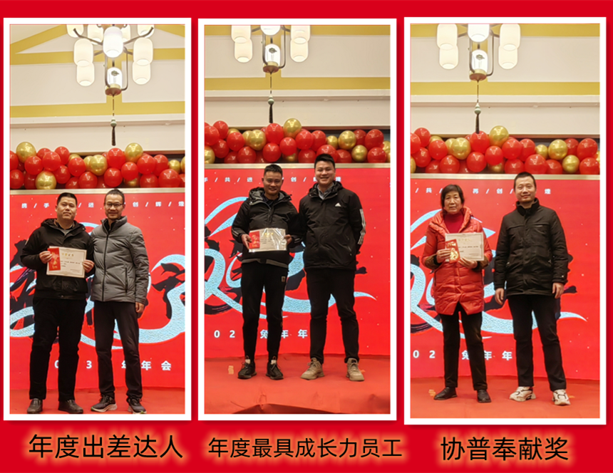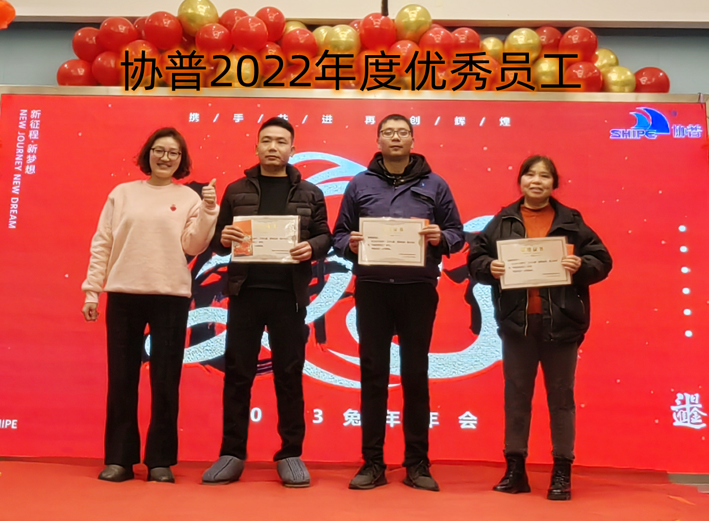 趙總致辭后,公司為2022年度表現(xiàn)優(yōu)異的團(tuán)隊和個人進(jìn)行了表彰。人才是公司生存和發(fā)展之本。公司發(fā)展的每一步都離不開每個協(xié)普人的努力和付出。本年度公司共評選出三名優(yōu)秀員工——陶?;?、楊剛、徐金鳳,“2022年度突出貢獻(xiàn)獎”——張傳東、桂佳俊,“2022年度敬業(yè)獎”——陳阿龍,“年度宣傳小能手”——宋玉秋;“協(xié)普年度出差達(dá)人”——胡金龍,“年度最具成長力員工”——王傳銀,“5S進(jìn)步團(tuán)體”——技術(shù)部、車間鉚焊班,“質(zhì)量進(jìn)步團(tuán)體”——質(zhì)量部,“協(xié)普奉獻(xiàn)獎”——劉庭玉。
