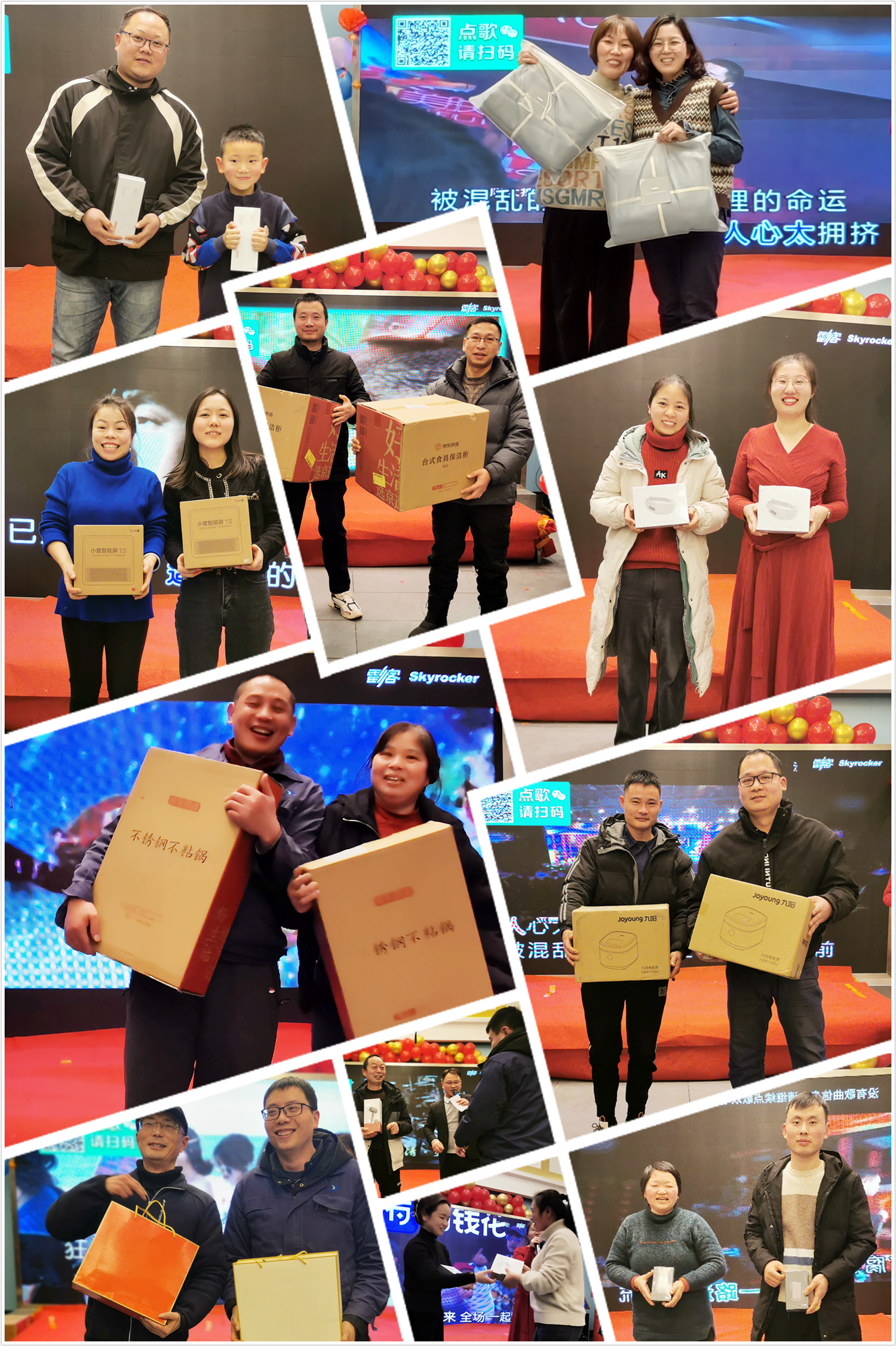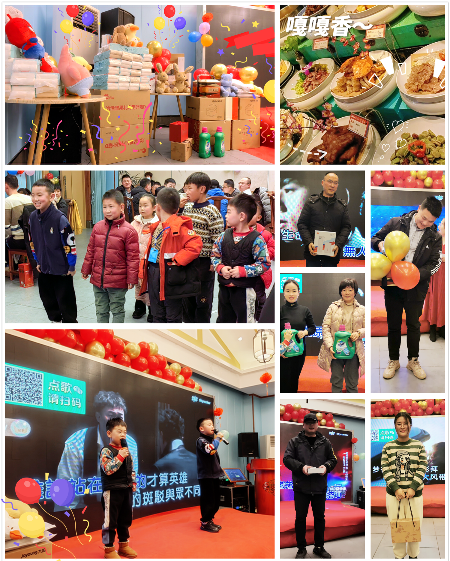 年會最激動人心的莫過于幸運大抽獎, 本次年會抽獎公司準(zhǔn)備了一批精美的生活電器禮品禮盒,還有暖心的生活家居用品、可愛的布偶娃娃,伴隨著抽獎和各項小游戲,開始了年會的晚宴環(huán)節(jié),以此來答謝各位協(xié)普家人一年來的辛勤工作與默默付出。大家聚在一起,舉杯歡飲,共襄盛舉。更有協(xié)普小朋友們的熱情暖場,現(xiàn)場氣氛熱烈,歌唱聲、嬉戲聲、祝福聲、碰杯聲此起彼伏......